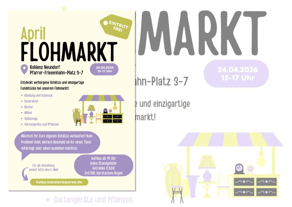 Am Freitag, den 24. April 2026, lädt das McKiz wieder zum Nachbarschafts-Flohmarkt ein! Ab 14 Uhr können alle Nachbarinnen und Nachbarn rund um das Gemeinschaftszentrum am Pfarrer-Friesenhahn-Platz 3–7 ihre Stände aufbauen. Der Flohmarkt startet um 15 Uhr und endet um 17 Uhr.