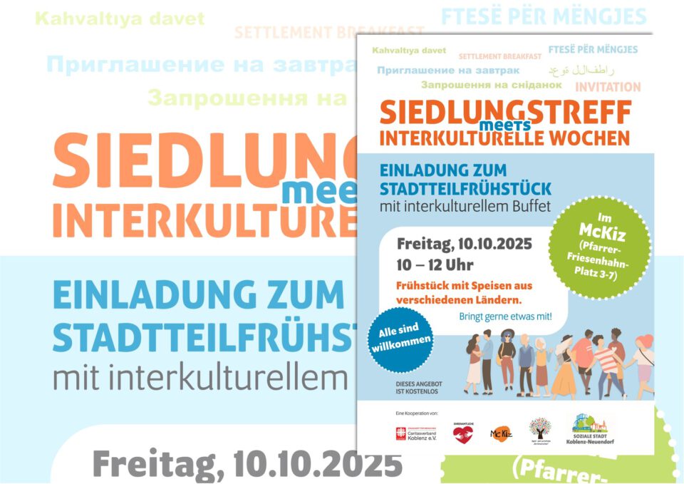 Am Freitag, den 10. Oktober laden wir im Rahmen der interkulturellen Wochen herzlich zum gemeinsamen Stadtteilfrühstück ein! Freut Euch auf ein gemütliches Miteinander mit einem vielfältigen Buffet. Also kommt vorbei und feiert mit uns die kulturelle Vielfalt unseres Stadtteils!