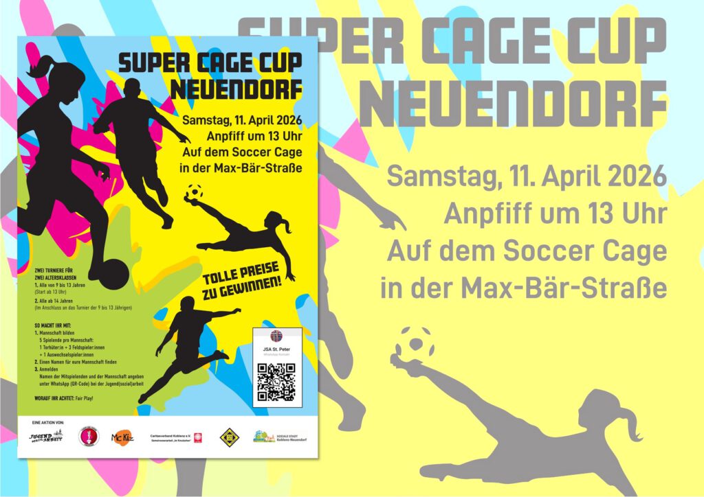 Am Samstag, den 11. April, findet ab 13 Uhr auf dem Bolzplatz in der Max-Bär-Straße der beliebte Super Cage Cup statt. Gespielt wird wieder in zwei Altersklassen. Ab 13 Uhr spielen alle von 9 bis 13 Jahren. Im Anschluss geht es für die Jugendlichen und jungen Erwachsenen ab 14 Jahren los. Gemischte Teams sind ausdrücklich erwünscht - Denn Sport verbindet!