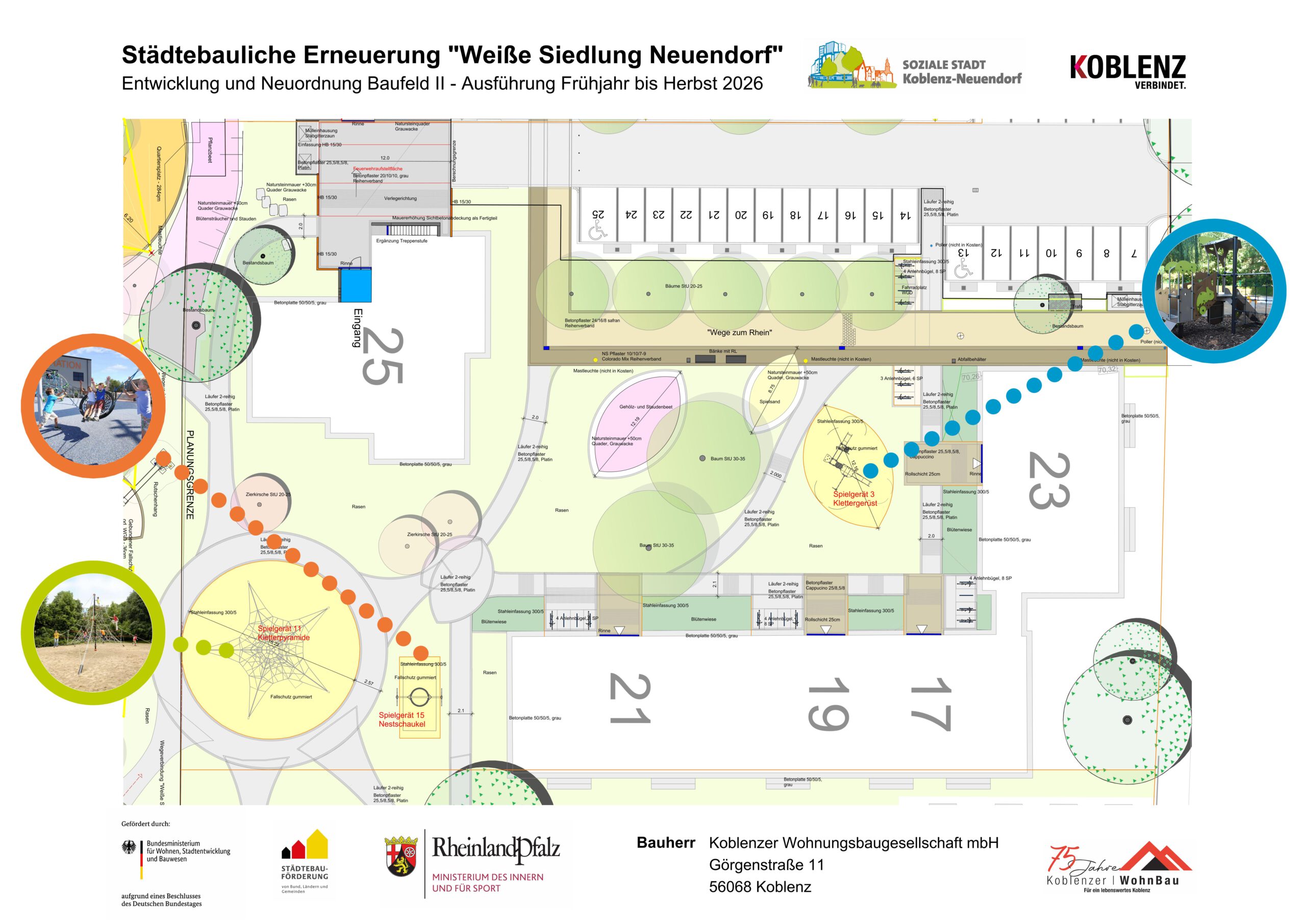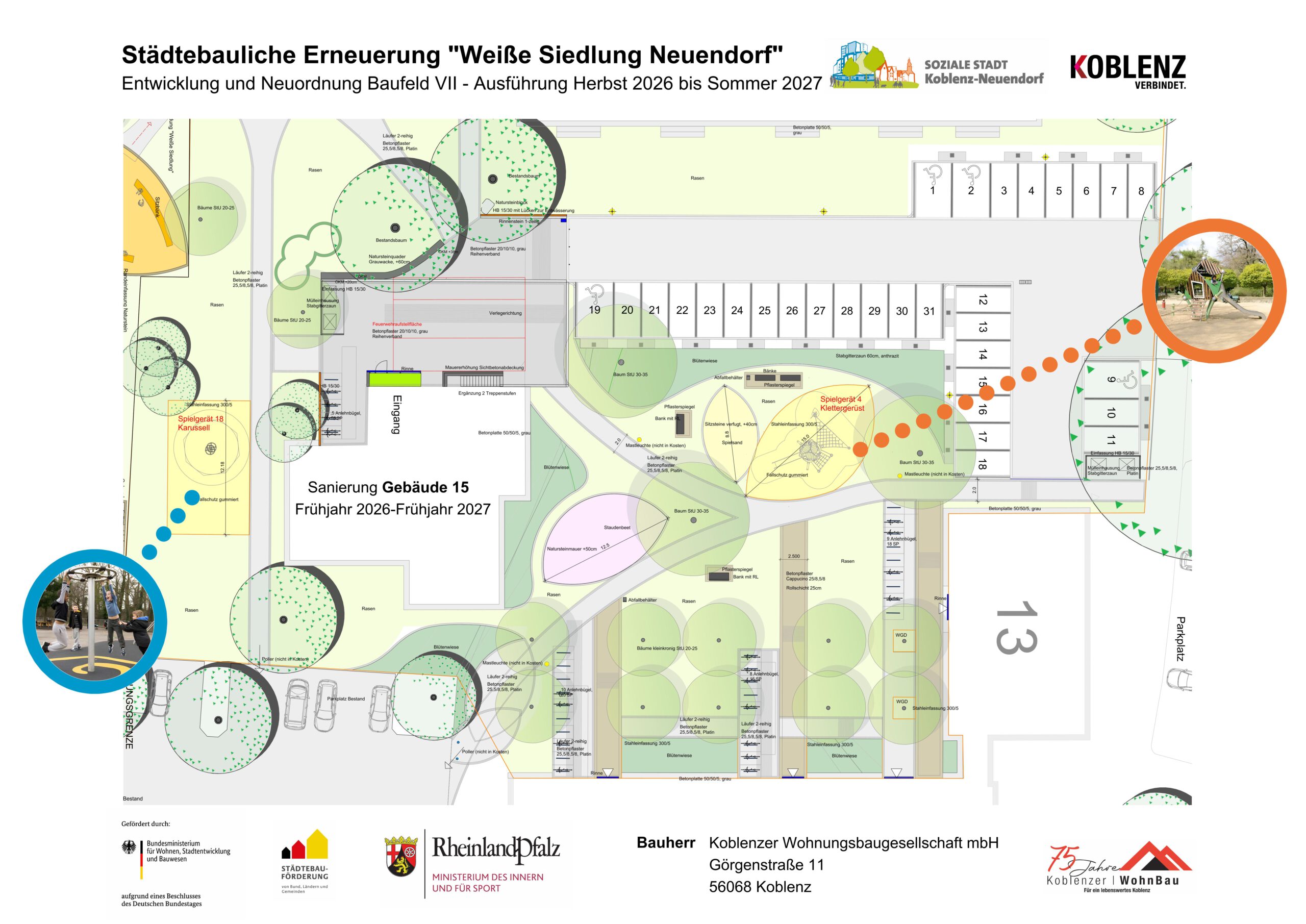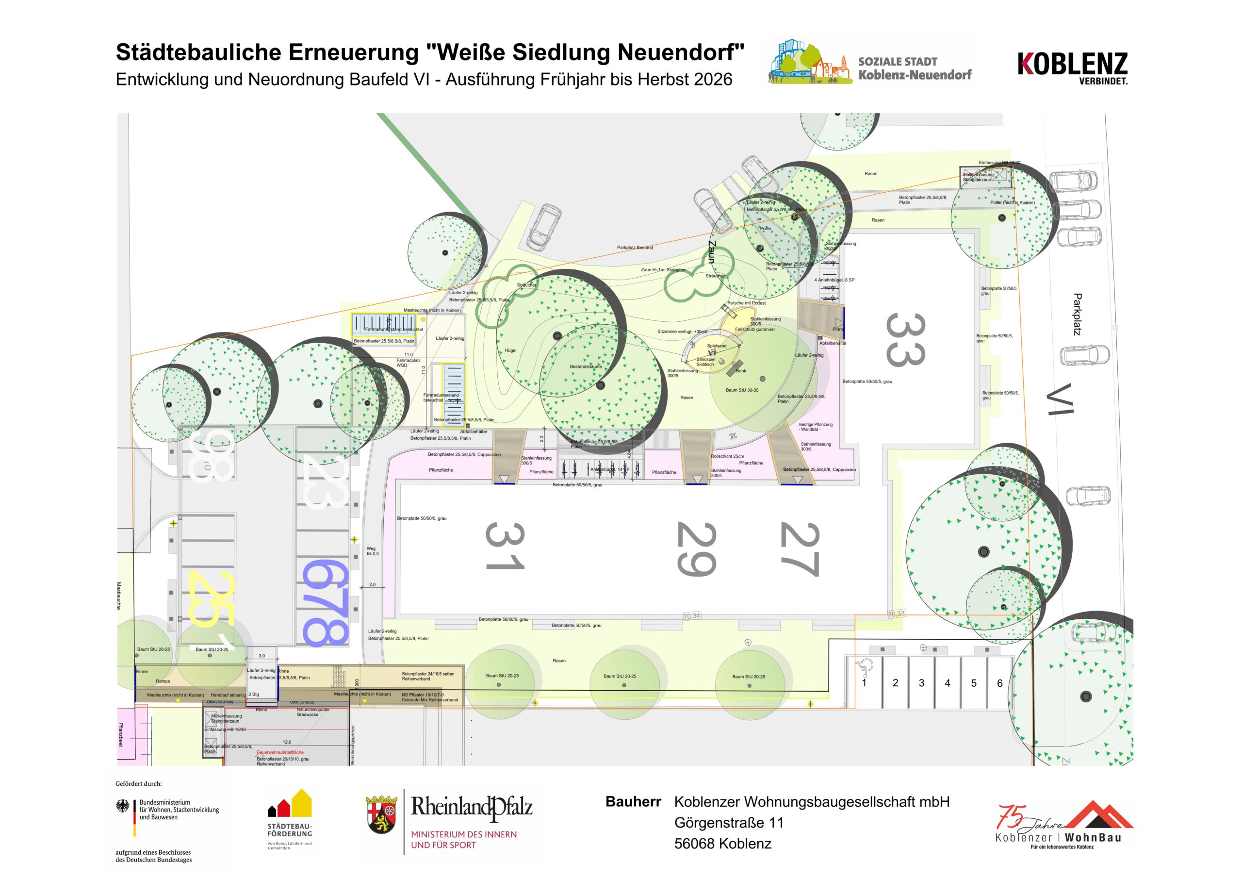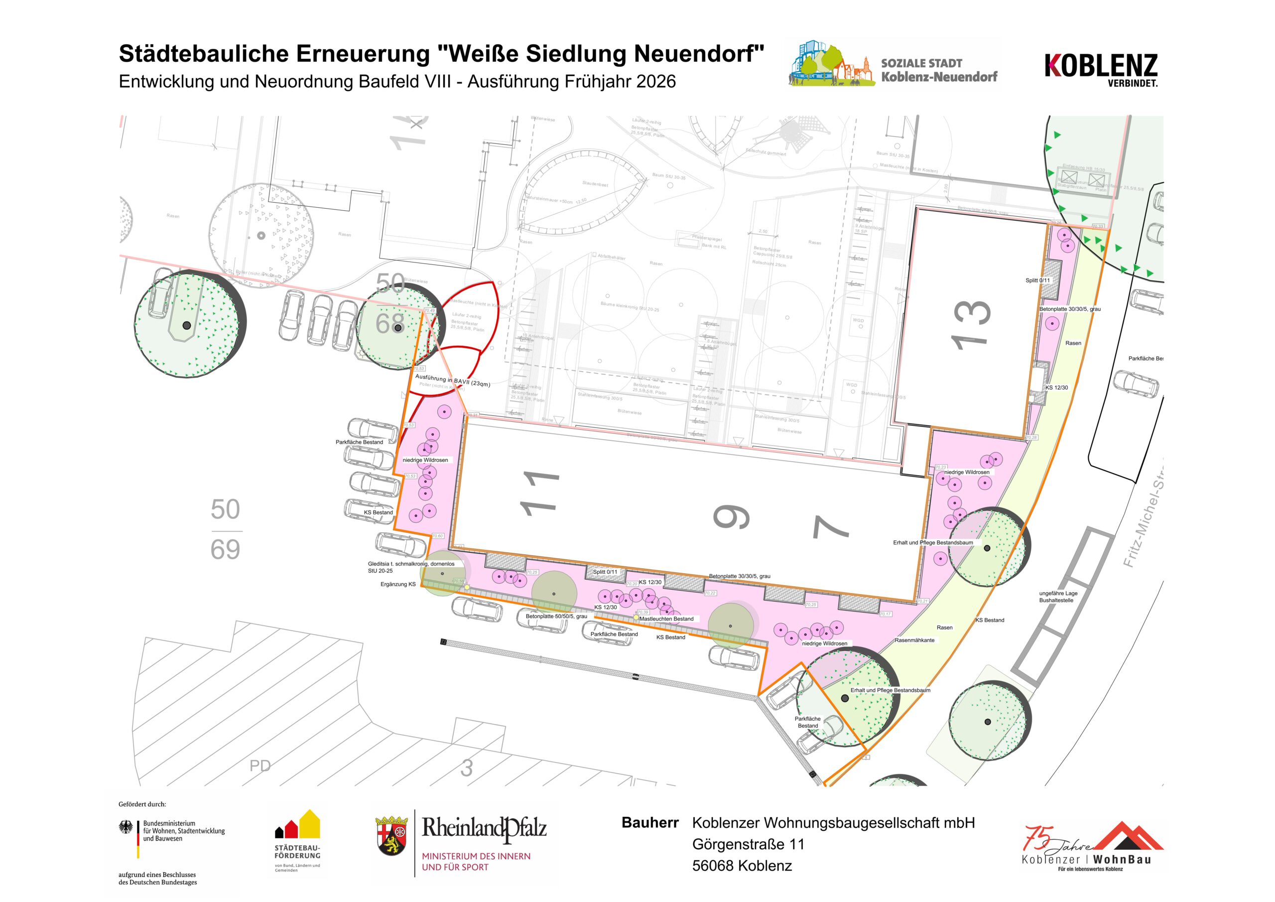 Die Koblenzer Wohnbaugesellschaft mbH freut sich mitteilen zu können, dass die Umgestaltungen der neugewonnen Freiflächen rund um die Fritz-Michel-Straße bald starten können. Nach dem Rückbau der Tiefgaragen rund um die Wohnhäuser in der Fritz-Michel-Straße entstehen in den kommenden Monaten neue, vielseitig nutzbare Freiflächen. Ziel der Maßnahme ist es, das Wohnumfeld nachhaltig aufzuwerten und attraktive Bereiche für Begegnung, Spiel und Erholung zu schaffen.