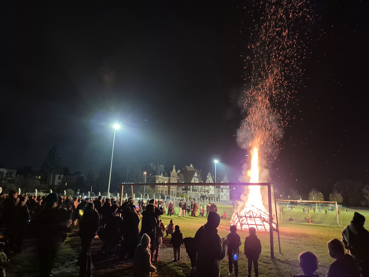 Am Ufer zwischen den beiden Sportplätzen der TUS Neuendorf entzündete die Freiwillige Feuerwehr das Martinsfeuer, das von allen bewundert wurde. Über 700 Martinswecken fanden ihren Weg zu den teilnehmenden Kindern, während für die Erwachsenen Würstchen und Getränke auf dem TUS-Gelände bereitstanden.